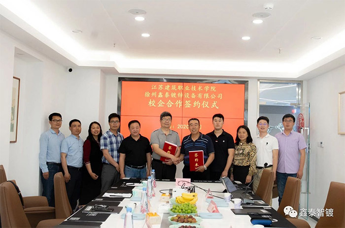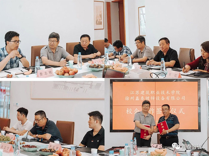 5月26日,徐州鑫泰鍍鋅設備有限公司與江蘇建筑職業技術學院在鑫泰總部舉行了“校企聯合熱鍍鋅行業人才培養戰略合作簽約儀式”。