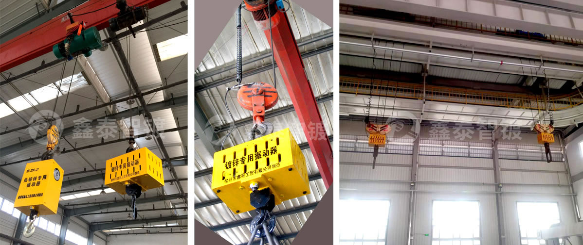 4、工作時待工件全部浸入鋅液后,開啟電源使其振動。由于振動頻率高,振幅適中,振動力通過鋼絲繩傳導至工件,使其在鋅液中高頻振動。“灰、渣”泛完后,關閉電源,停下振動器,用打灰刀將懸浮的"灰渣"打干凈。然后用行車以1.2米~1.5米/分鐘的速度將工件提出鋅液。 5、待工件全部離開鋅液面后開啟振動器,使工件上多余的鋅瘤經振動后落入鋅鍋內。
